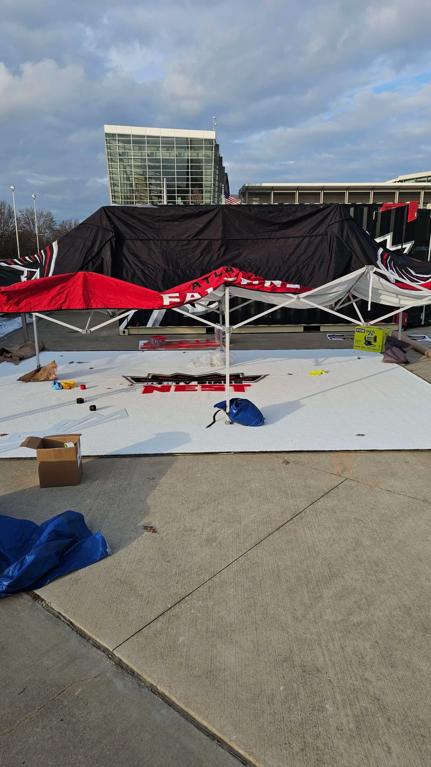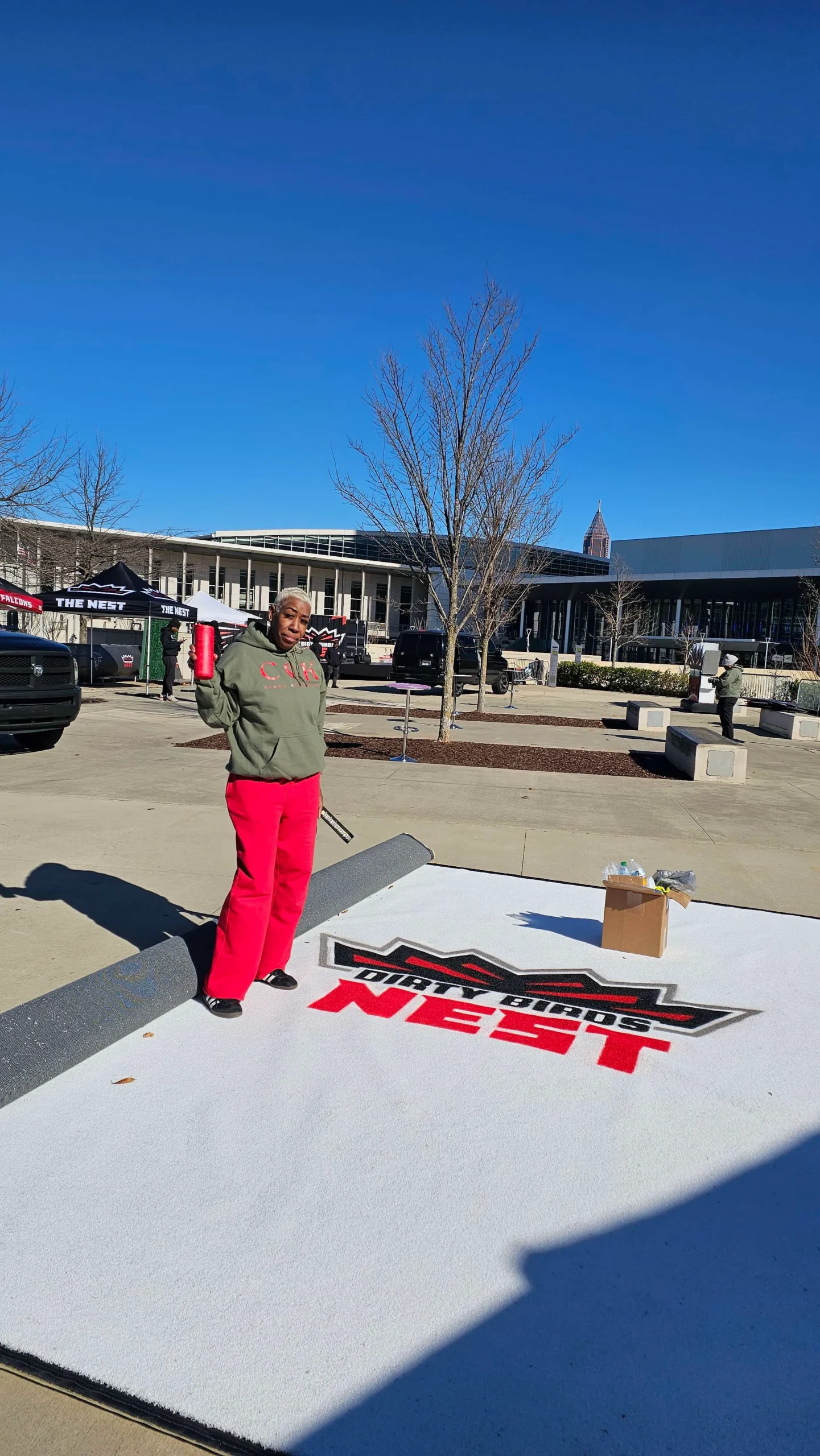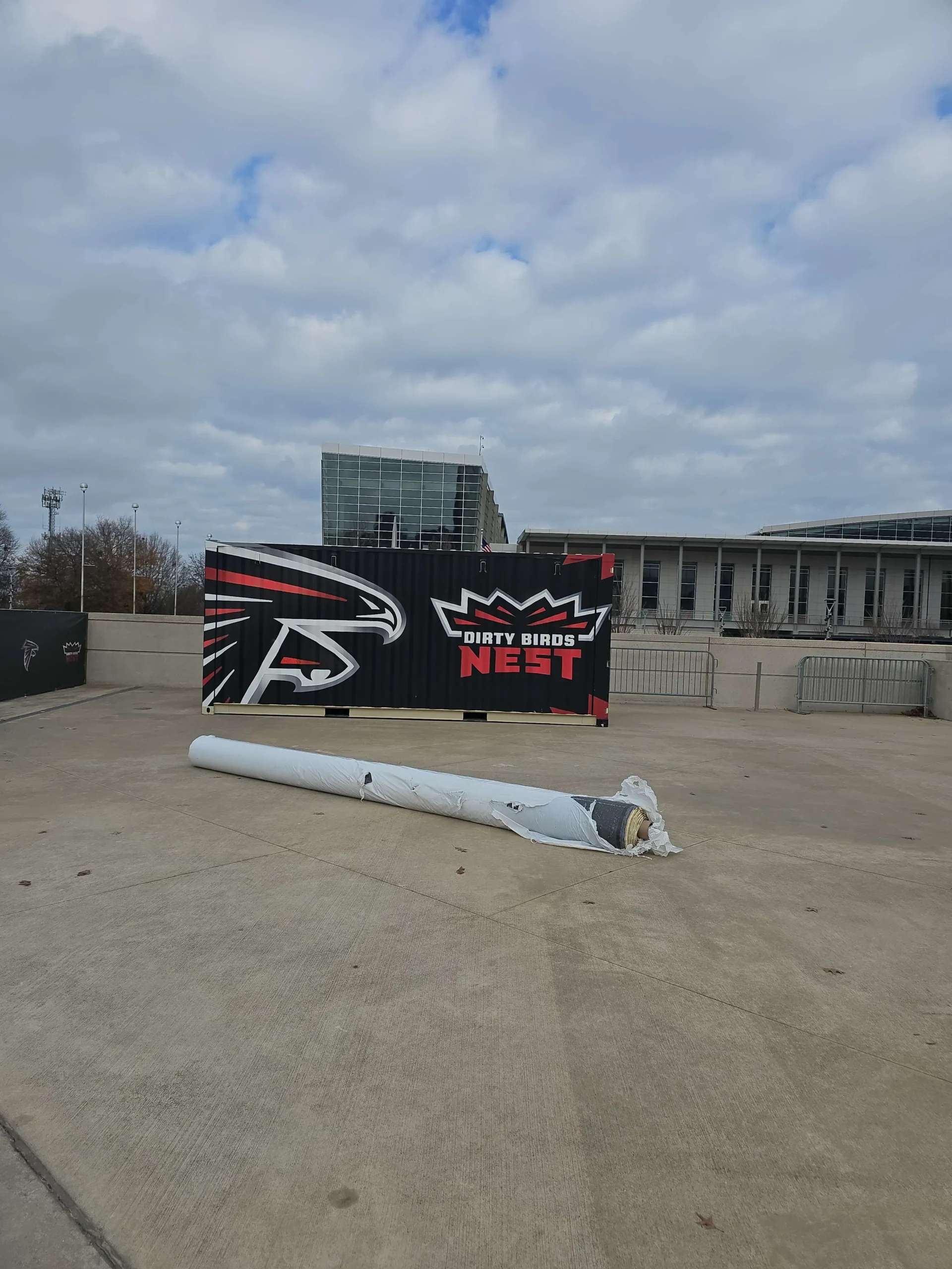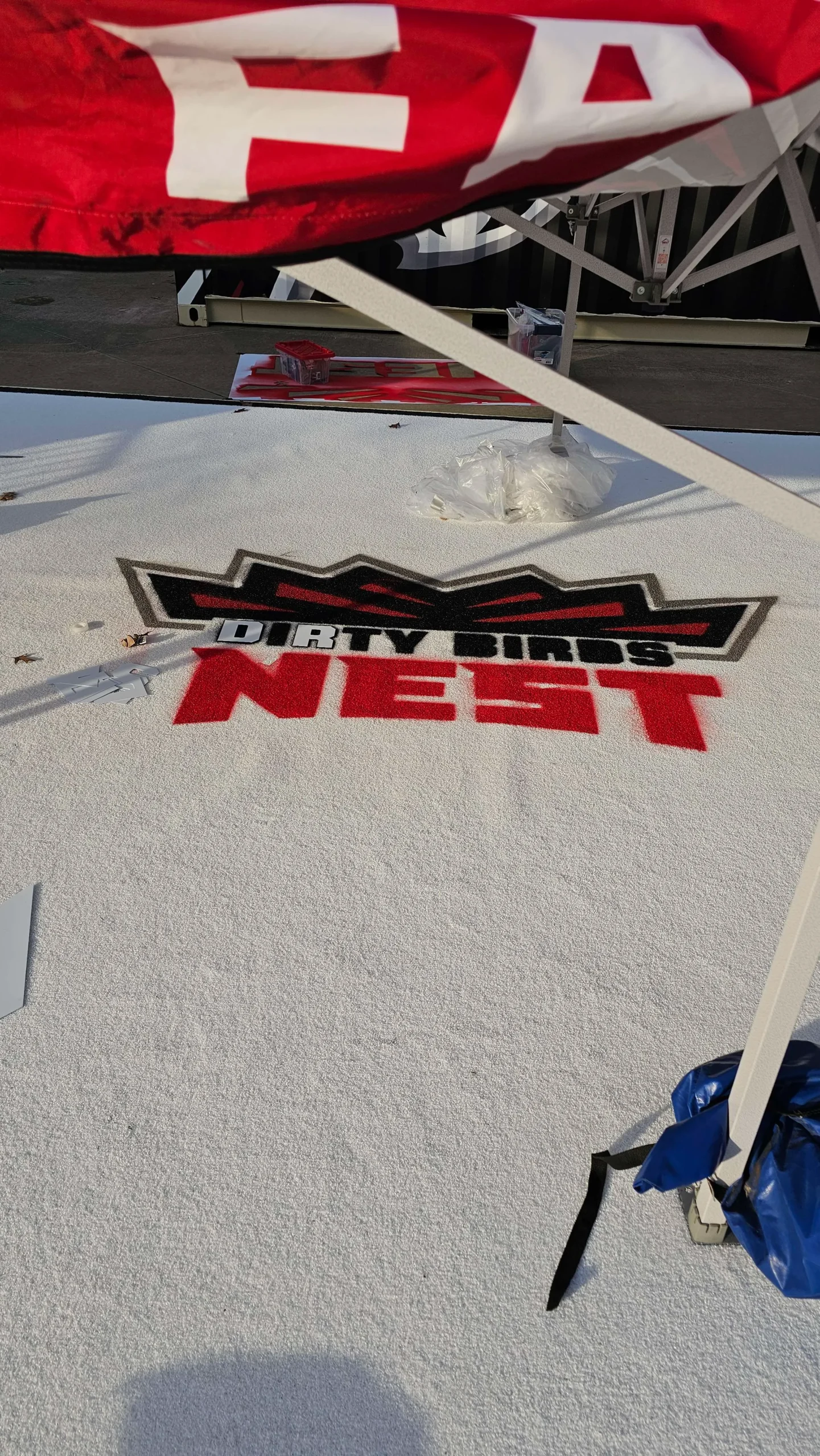 Our talented design team brought the Atlanta Falcons Dirty Birds Nest logo to life by painting it on a custom 15′ x 20′ white carpet—perfect for their tailgate activations. Let us handle the details so you can enjoy your event stress-free! Contact us today for a quote.